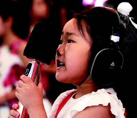 8月12日,一名小读者在2020上海书展“陈伯吹童书屋”里朗读绘本。
