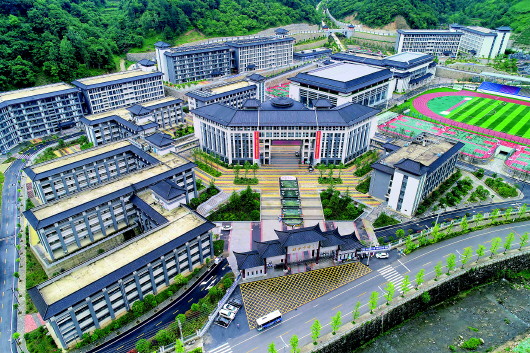 上图:镇安县镇安中学建筑群(七月三十日摄,无人机照片)。