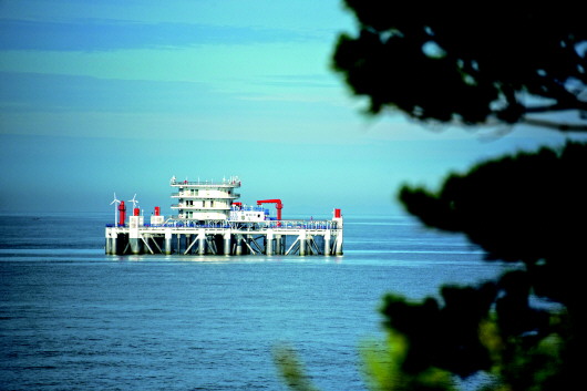 ▲这是7月24日拍摄的全国首座大型智能化海洋牧场综合体平台“耕海1号”。 新华社记者王凯摄