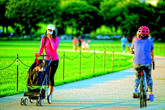 8月16日,人们在美国首都华盛顿的国家广场游览。美国约翰斯·霍普金斯大学16日发布的新冠疫情最新统计数据显示,截至美国东部时间16日18时27分(北京时间17日6时27分),美国新冠累计死亡病例达170019例,累计确诊5401167例。 新华社发(沈霆摄)