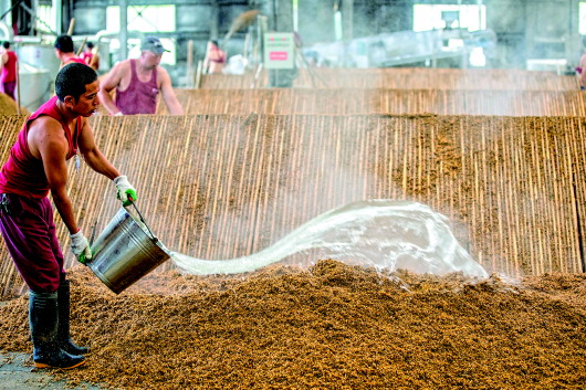 ▲8月9日,工人在贵州省毕节酒厂的制酒车间劳作。初秋时节,天气逐渐转凉,位于赤水河上游的贵州省毕节市进入酿酒繁忙期。酿酒师傅们按照制曲、下料、摊晾、封窖等传统工艺酿酒,各个酒厂一派热火朝天的景象。 新华社发(罗大富摄)