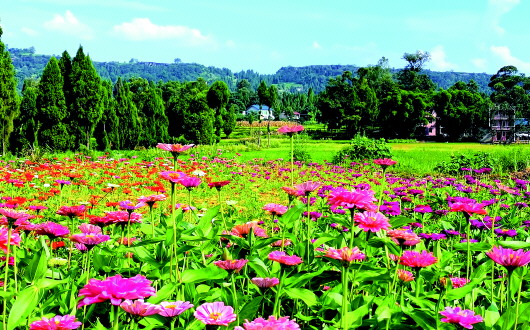 看完古津关,走过一片高高的玉米田,稻田、荷塘、农房映入眼帘,稻香与荷香丝丝缕缕沁入心脾。当地村民告诉我们,还有15天就可以收稻子了。田间小道上铺满了金灿灿的玉米粒,踩在上面卡兹卡兹响,正担心把玉米踩坏了,晒玉米的大姐却叮嘱:“踩深点,别滑倒了!”