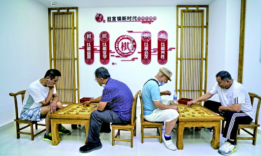 居民在北京市大兴区旧宫镇的新时代文明实践所文化活动室下棋(8月3日摄)。随着基层文明实践活动的深入开展,基层可以开展的活动内容更加丰富了。
