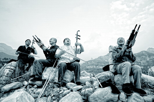 ▲2008年8月,盲艺人在表演。 大山摄 |