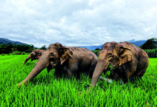 ▲2020年7月13日,几头亚洲象在破坏庄稼。(无人机拍摄) 勐海亚洲象监测预警中心供图 |