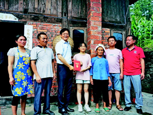 ▲2020年高考成绩发布后,陈立群(左三)走村串寨送喜报。这个习惯他已坚持了四年。