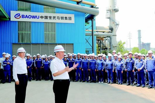 马鞍山市因钢而设、因钢而兴。习近平来到中国宝武马钢集团,了解企业生产经营情况,察看重点产品展示。随后,习近平走进优质合金棒材车间,察看加热炉、初轧机、中轧机等运行情况。车间外,企业劳动模范、工人代表看到总书记来了,热烈鼓掌。习近平亲切地同大家打招呼。他指出,疫情发生以来,马钢克服困难,率先复工复产,上半年产量和营收同比实现“双升”。要抓住深化国有企业改革和推动长三角一体化发展的重大机遇,加强新材料新技术研发,开发生产更多技术含量高、附加值高的新产品,增强市场竞争力。劳动模范是共和国的功臣,要大力弘扬劳模精神。