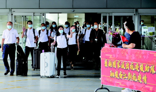 新华社广州/香港8月21日电继8月初首支“内地核酸检测支援队”的10名先遣队员抵港后,其余50名队员21日下午也来到香港。他们将协助香港特区政府开展核酸检测工作,抗击新冠肺炎疫情。