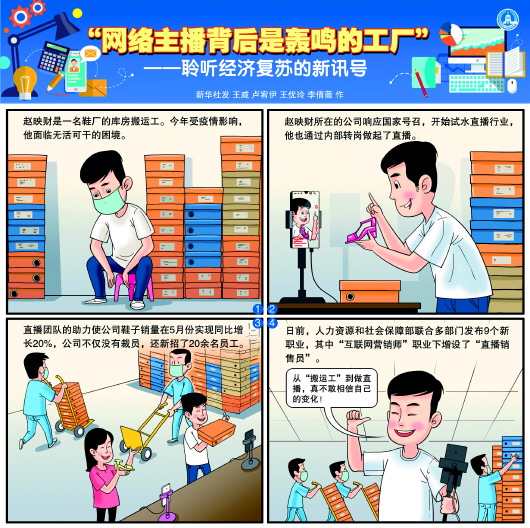 “网络主播背后是轰鸣的工厂。”佘骥说,新职业快速涌现成为消费升级、技术发展的必然趋势,显示出我国经济发展的新动向和强大的活力,也传递出经济不断复苏的新讯号。