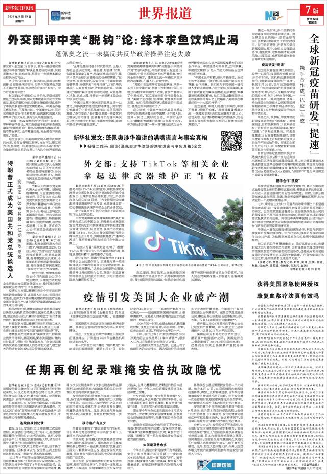 | ( 2020-08-25 ) 稿件来源:新华每日电讯 世界报道 |