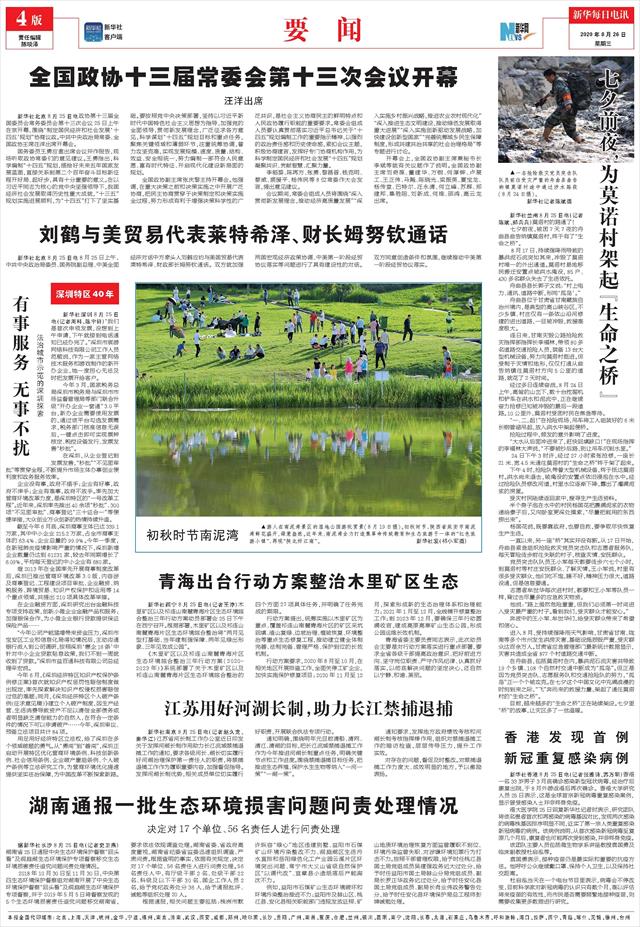 | ( 2020-08-26 ) 稿件来源:新华每日电讯 要 闻 |