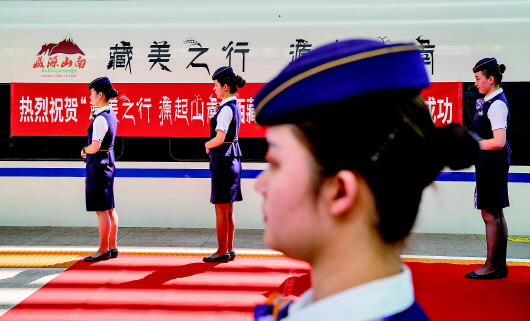 8月25日,“藏美之行 源起山南”高铁冠名列车首发仪式在上海虹桥站举行。这是首列以西藏旅游为主题的高铁冠名列车,将通过高铁把西藏山南的大美风光和丰富人文传递至祖国各地,助力山南旅游品牌升级与口碑提升。 新华社记者普布扎西摄