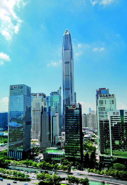 深圳,福田,平安金融中心。站在每秒攀升10米的电梯中,能让人感受到一种飞机起飞的拉升感——快!