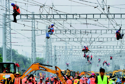 8月30日,丰台站站前过渡工程京沪线、京广线拨接施工顺利进行,京沪线、京广线普速铁路正式拨入新建北京丰台站内。 新华社记者张晨霖摄