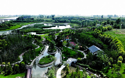 近年来,秦皇岛抚宁区持续推进洋河生态治理,目前已形成集人工湖、木栈道、亲水平台等于一体的洋河湿地公园景观廊道。 新华社记者杨世尧摄