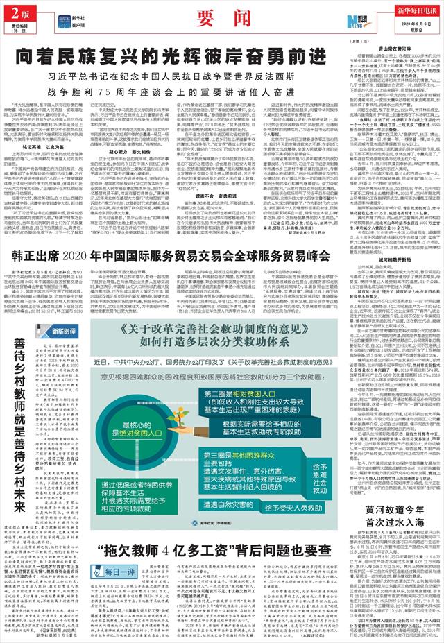 | ( 2020-09-06 ) 稿件来源:新华每日电讯 要 闻 |