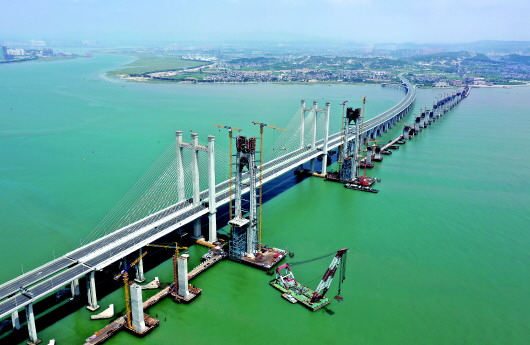 9月15日,新建福(州)厦(门)铁路泉州湾跨海大桥南岸主塔成功封顶。新建福厦铁路设计时速350公里,预计2022年通车。新华社记者林善传摄