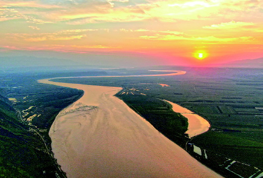 这是9月8日在河南省灵宝市函谷关镇东寨村附近拍摄的黄河景色(无人机照片)。