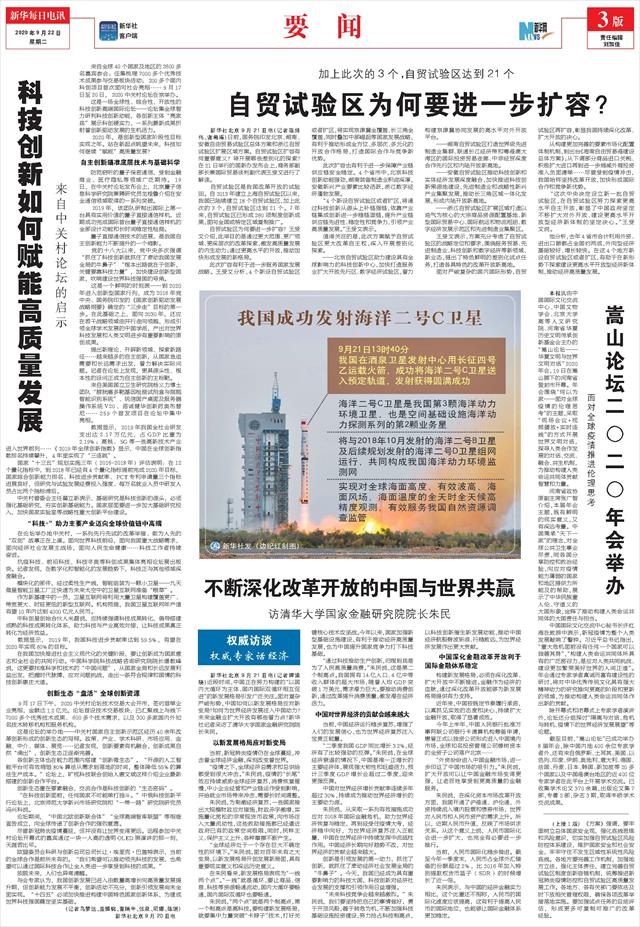 | ( 2020-09-22 ) 稿件来源:新华每日电讯 要 闻 |