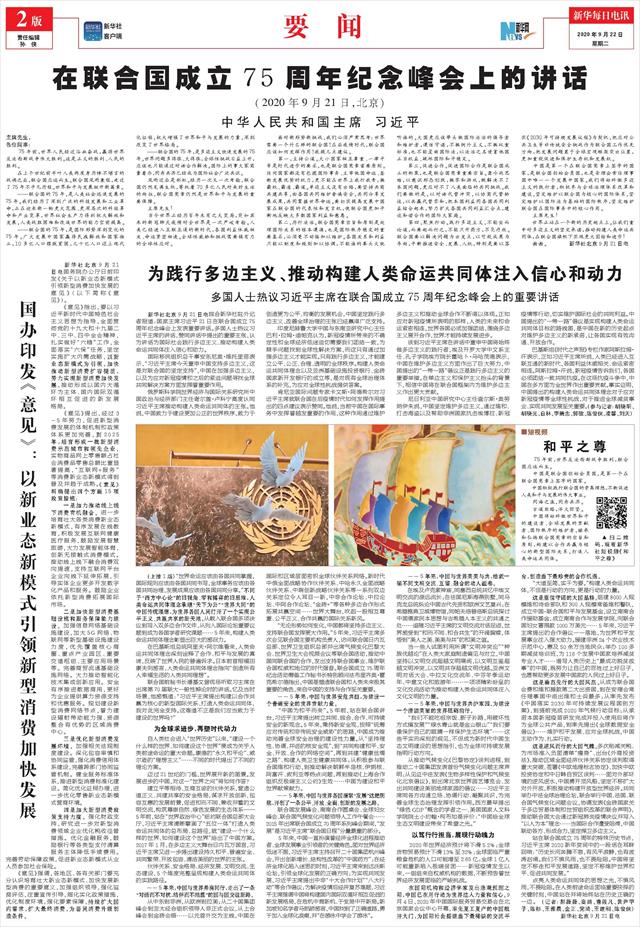| ( 2020-09-22 ) 稿件来源:新华每日电讯 要 闻 |