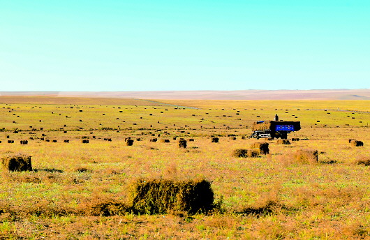 金秋时节,生活在内蒙古宝力根苏木草原上的牧民,一边忙着运送牲畜,一边收草捆,为即将到来的冬季做准备(9月19日摄)。 新华社记者彭源摄