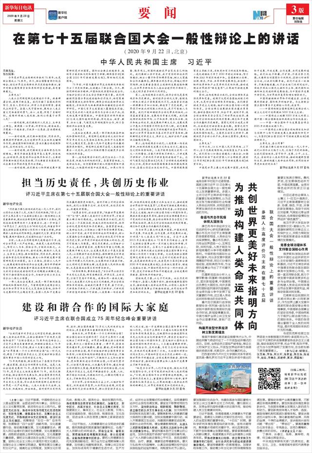 | ( 2020-09-23 ) 稿件来源:新华每日电讯 要 闻 |