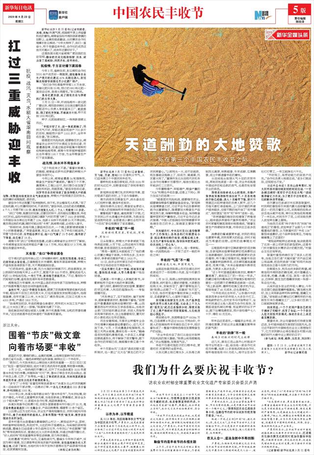| ( 2020-09-23 ) 稿件来源:新华每日电讯 中国农民丰收节 |