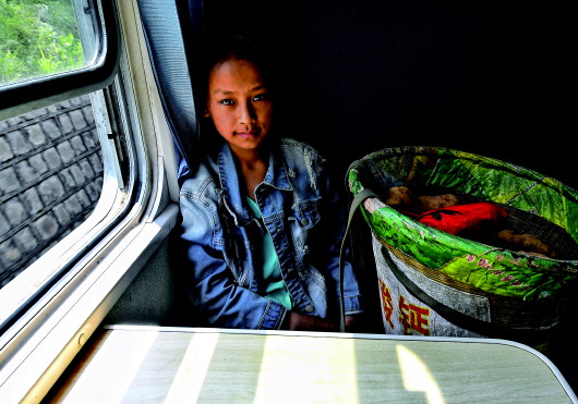 ▲吴思语(右)带着弟弟吴思远乘坐“小慢车”前往西昌走亲戚。
