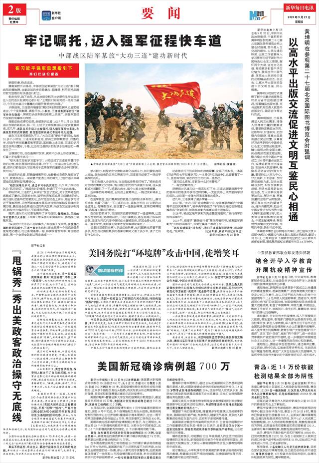 | ( 2020-09-27 ) 稿件来源:新华每日电讯 综合新闻 |
