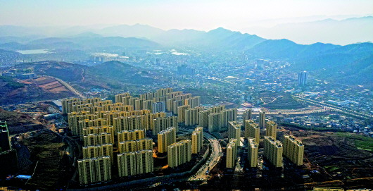 云南省鲁甸县卯家湾易地扶贫安置区(3月15日摄,无人机照片)。新华社记者江文耀摄 |