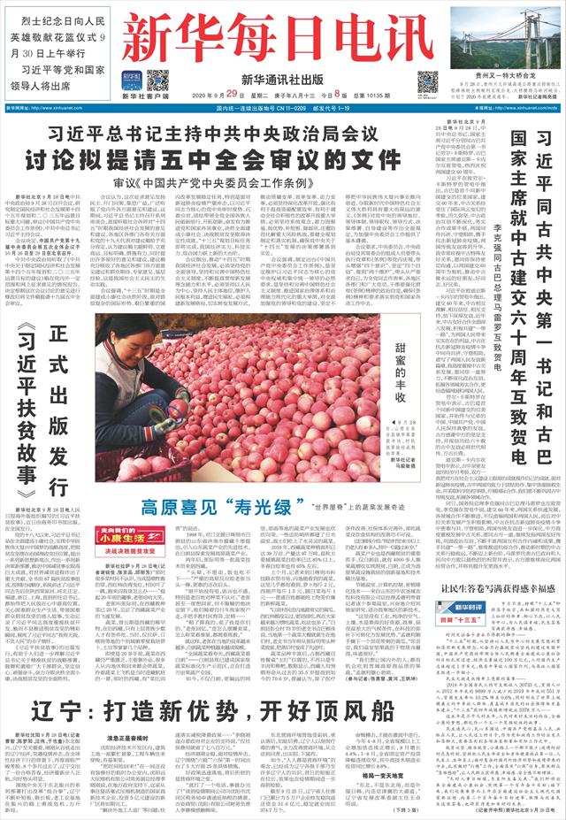 | ( 2020-09-29 ) 稿件来源:新华每日电讯 要 闻 |
