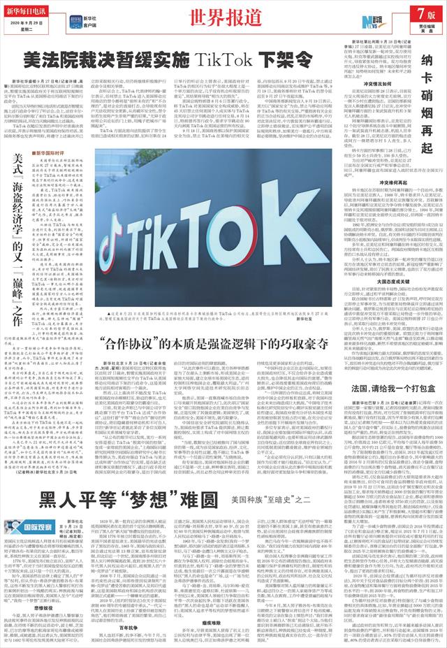 | ( 2020-09-29 ) 稿件来源:新华每日电讯 世界报道 |