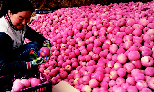 9月28日,山西吉县吉昌镇苹果喜获丰收,村民抓紧抢收成熟的苹果。新华社记者马毅敏摄 |