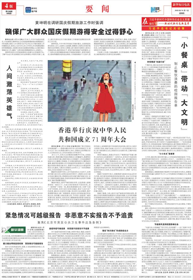| ( 2020-10-01 ) 稿件来源:新华每日电讯 要 闻 |