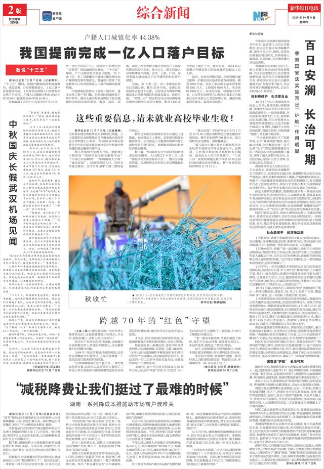 | ( 2020-10-08 ) 稿件来源:新华每日电讯 综合新闻 |