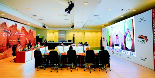 ▲这是10月7日在沙特阿拉伯首都利雅得拍摄的二十国集团旅游部长视频会议现场。二十国集团旅游部长7日召开视频会议,承诺推动旅游业发展,最大限度提升旅游业对全球可持续发展的贡献。          新华社发(沙特新闻部供图)