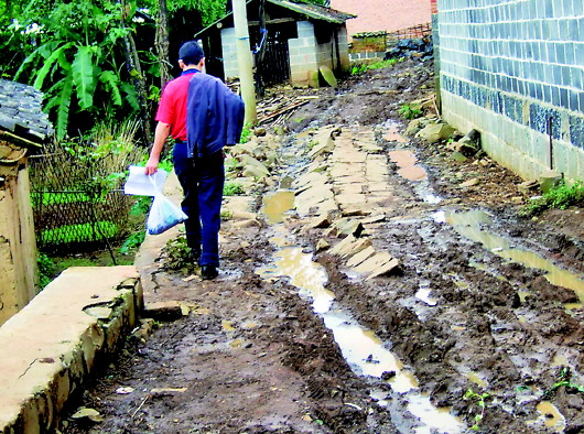 脱贫前的腾冲市三家村中寨司莫拉佤族村道路。摄于2009年。  新华社发