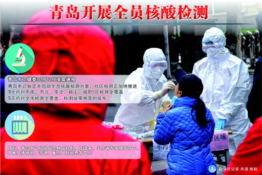 从11日夜间开始,青岛市主城区部分小区居民陆续接到通知,要求进行核酸检测。青岛市卫健委12日凌晨通报,青岛市已制定并启动全员核酸检测方案,社区检测正加快推进,3天内对市南、市北、李沧、崂山、城阳5区检测全覆盖,5天内对全市检测全覆盖,检测结果将及时发布。