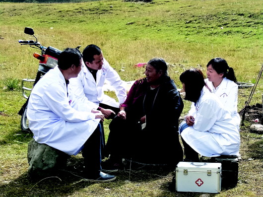 来自北京的援青医生深入玉树牧区为患者看病(2018年9月7日摄)。 |