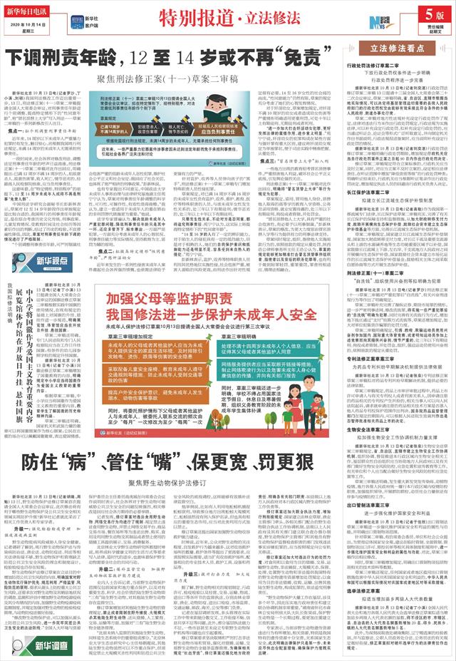 | ( 2020-10-14 ) 稿件来源:新华每日电讯 特别报道·立法修法 |