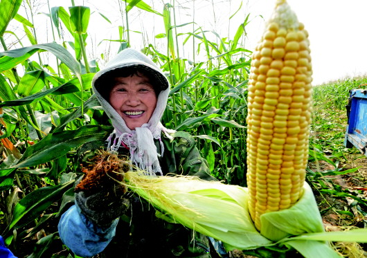 ▲10月12日,唐山市曹妃甸区第八农场的一名农民展示收获的甜玉米。近年来,河北省唐山市曹妃甸区以农业增效、农民增收为目标,引导农场调整种植结构,通过“公司+基地+农户”的经营模式,发展订单式甜玉米种植,取得良好效果。