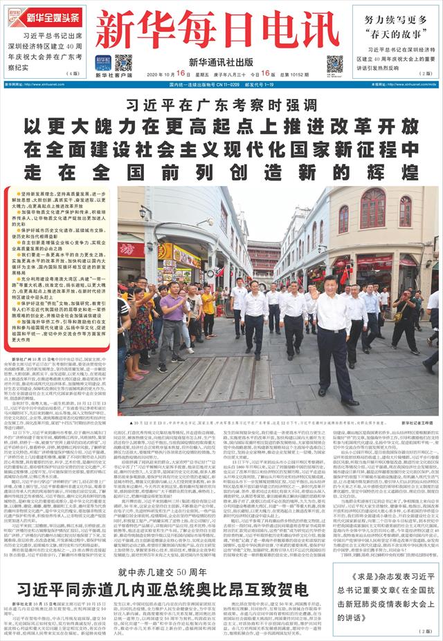 ( 2020-10-16 ) 稿件来源:新华每日电讯 要 闻