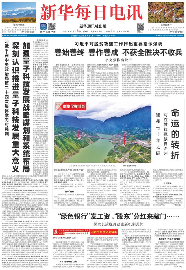 | ( 2020-10-18 ) 稿件来源:新华每日电讯 要 闻 |