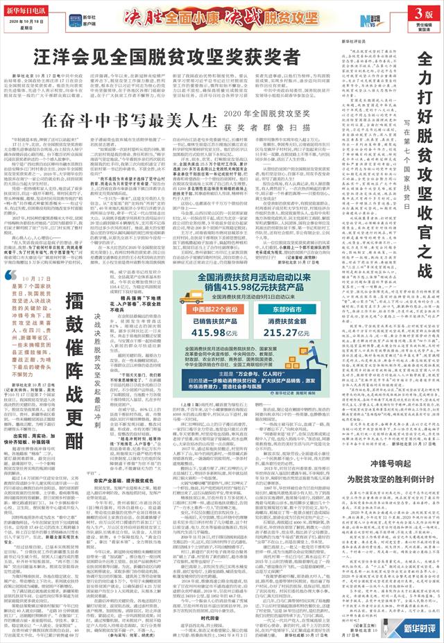 | ( 2020-10-18 ) 稿件来源:新华每日电讯 决胜全面小康·决战脱贫攻坚 |