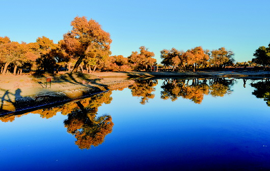 金秋十月,内蒙古自治区额济纳旗境内的胡杨林迎来了一年中最为美丽的季节(10月18日摄)。 新华社记者连振摄