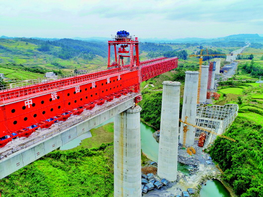 贵(贵阳)南(南宁)高铁是我国“八纵八横”高速铁路主通道包头至海口通道的重要组成部分,也是西南地区首条设计时速350公里的高速铁路。目前,中铁四局等建设单位抢抓工期全力施工。新华社记者刘续摄