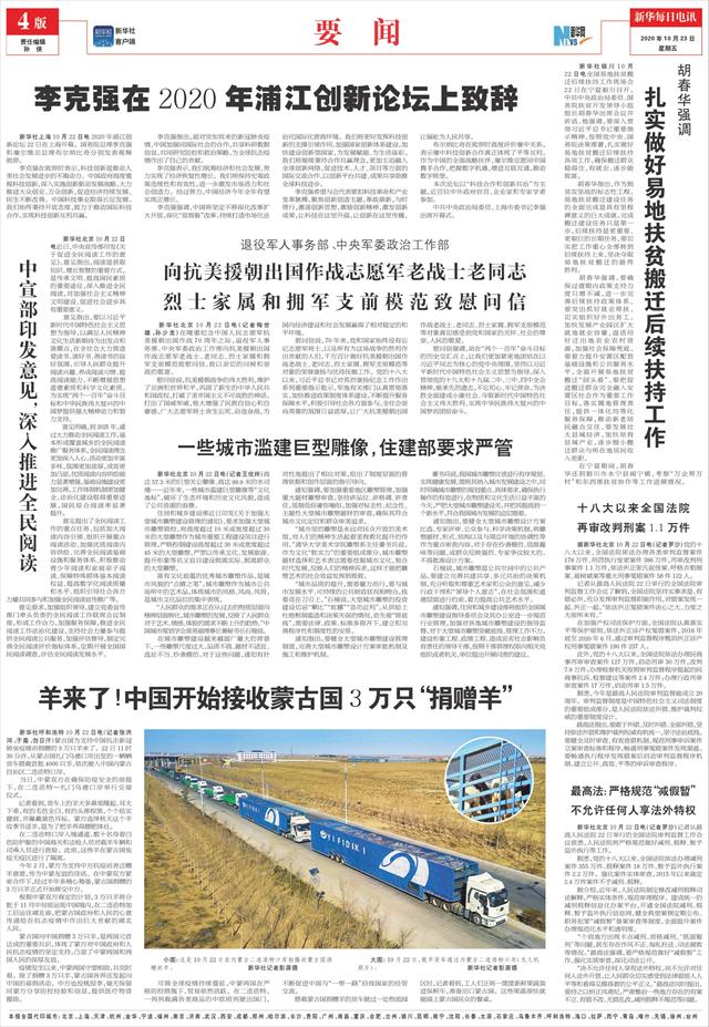 | ( 2020-10-23 ) 稿件来源:新华每日电讯 要 闻 |