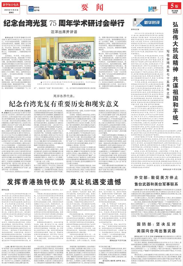 | ( 2020-10-23 ) 稿件来源:新华每日电讯 要 闻 |