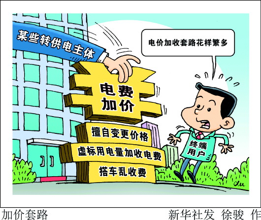 电力法规定,禁止任何单位和个人在电费中加收其他费用。督查发现,部分转供电主体以设备管理费、公摊能耗费、空调费、消防泵房费、电梯费以及峰谷差、电损线损、公用照明、人员服务费用等名义,搭车收费。