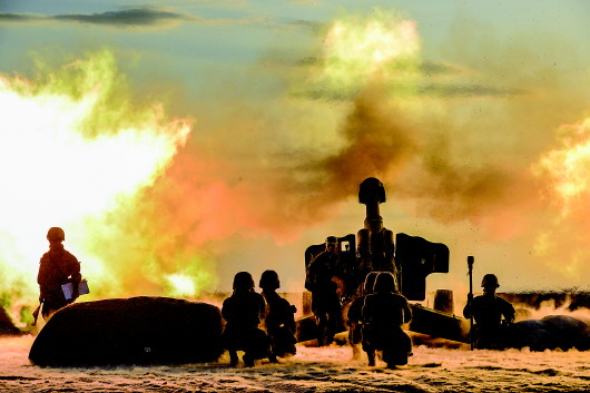 2017年8月25日,第74集团军某炮兵旅在西北戈壁组织实兵实弹战术演习,“志愿军战歌连”对“敌”实施火力打击。